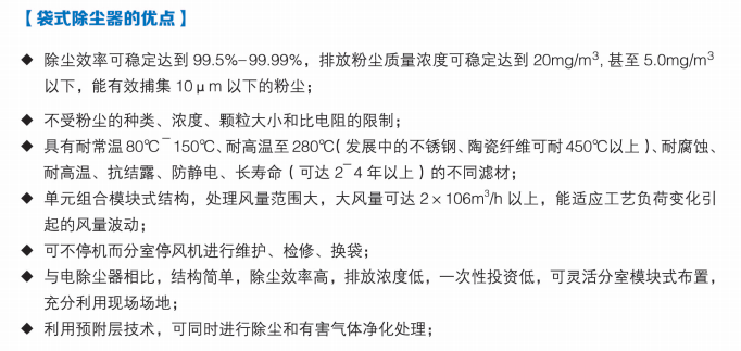 ● 成本低:相同的除塵效率下,造價低于電除塵器